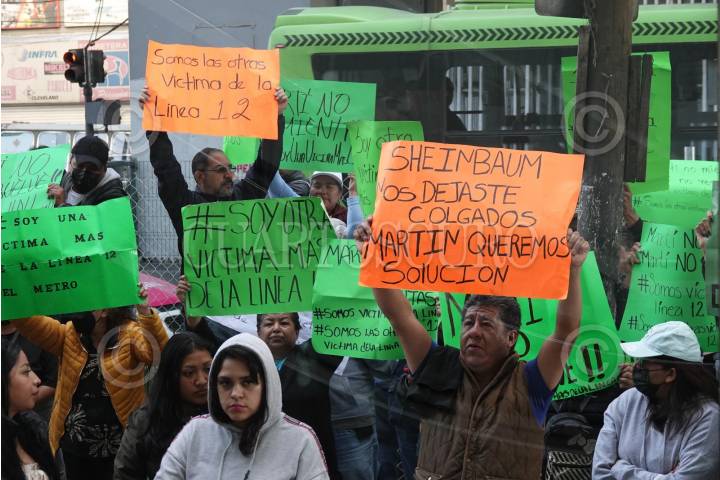 Comerciantes afectados por el cierre del metro de la Línea 12, protestaron para exigir justicia durante la reapertura del tramo de estaciones de Atlalilco a Periférico Oriente y viceversa