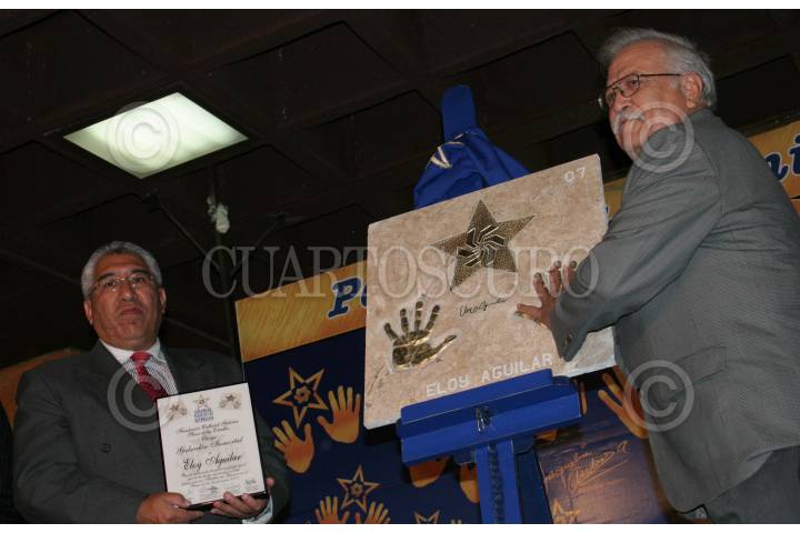 MÉXICO, D.F., 03MARZO2007.- En la plaza de las Estrellas, plasmo sus huellas el director y productor del Buró de Noticias de Univisión México, Porfirio Patiño Juárez, a quien se le destaco su gra trayectoria periodística en México. FOTO: EZEQUIEL TLAXCALA/CUARTOSCURO.COM