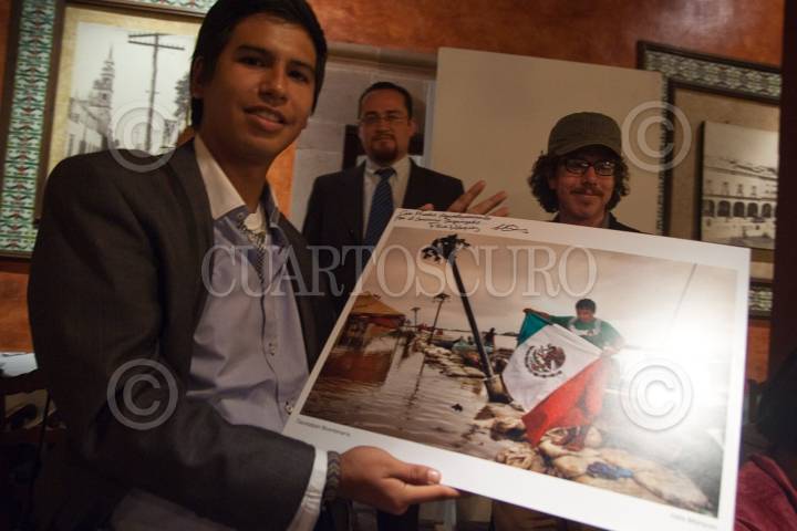 QUERÉTARO, QUERÉTARO, 19FEBRERO2011.- El fotógrafo de la Agencia Cuartoscuro Félix Márquez, recibió el Primer lugar por la imagen "Tlacotalpan Bicentenario" en el Premio Nacional de Fotografía Periodística Plaza de Armas 2010. Organizado por el periódico Plaza de Armas de la ciudad de Querétaro. FOTO: DEMIAN CHÁVEZ/CUARTOSCURO.COM