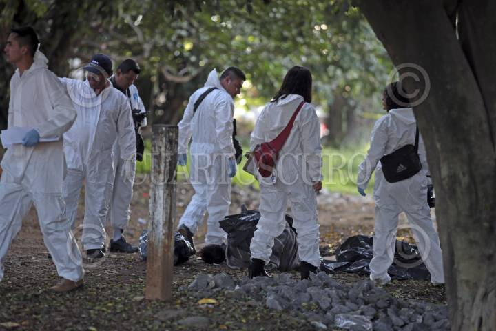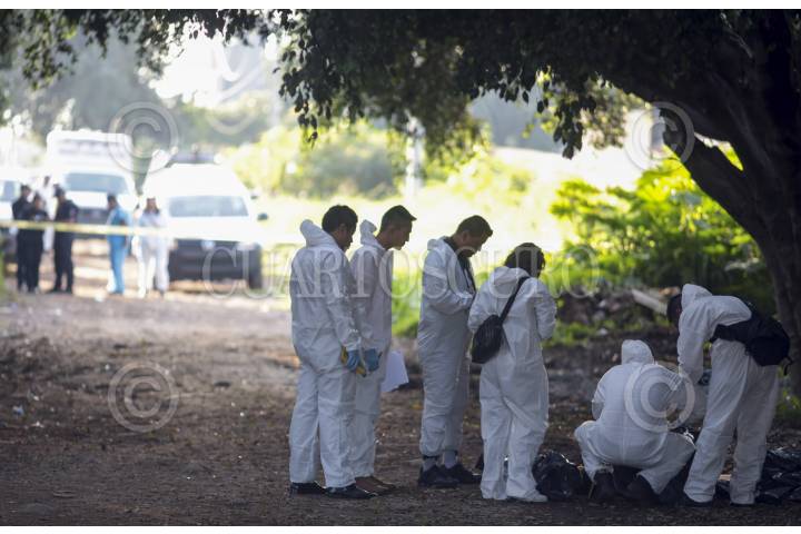 CUERNAVACA, MORELOS, 07AGOSTO2016.- Peritos de la procuraduría de justicia del estado realizan las investigaciones correspondientes en el lugar donde fue hallado un cuerpo de una persona desmembrada ubicado en la antigua vía de ferrocarril en el pueblo de Chamilpa. El cadáver estaba dentro de unas bolsas de basura y tenía un mensaje. FOTO: MARGARITO PÉREZ RETANA /CUARTOSCURO.COM