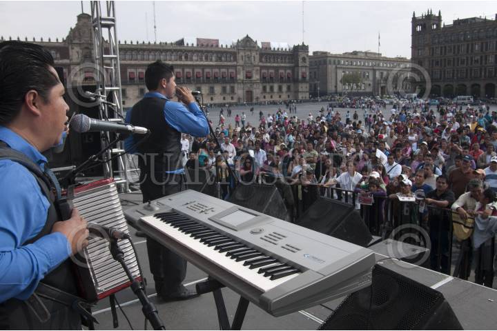 MÉXICO, D.F. 28ENERO2012.- La agrupación de música tropical " Perla Colombiana" actuó durante el Festival Musical que el Gobierno del Distrito Federal organizó para recolectar víveres que serán destinados a la Sierra Tarahumara la tarde de hoy, donde continuará hasta las 18hrs y reiniciará a las 12hrs del Domingo para cerrar con La sonora Dinamita. La recolección de víveres se ha visto con afluencia constante de capitalinos. FOTO: FRANCISCO RODRÍGUEZ/CUARTOSCURO.COM