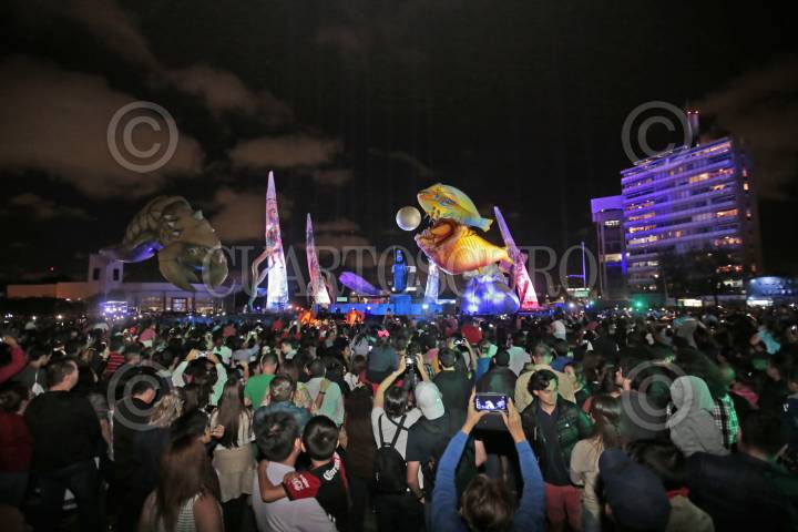GUADALAJARA, JALISCO. 07OCTUBRE2017.- Esta noche en la Glorieta de la Minerva, se llevó a cabo el espectáculo “Perla” de la compañía francesa Plasticiens Volants evento organizado por el Ayuntamiento municipal y como parte del Festival SUCEDE Guadalajara, al que asistieron alrededor de 90 mil personas según cifras de Protección Civil y Bomberos del municipio. FOTO: FERNANDO CARRANZA GARCIA / CUARTOSCURO.COM