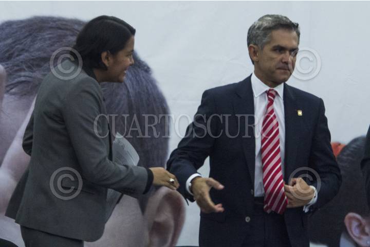 MÉXICO, D.F., 30ABRIL2014.- Perla Gallardo, presidenta de la Comisión de Derechos Humanos del DF junto a Miguel Ángel Mancera, Jefe de Gobierno Capitalino durante el Foro internacional sobre la prevención, protección y atención de la violencia hacia las niñas, niños y adolescentes en la familia. FOTO: ENRIQUE ORDÓÑEZ /CUARTOSCURO.COM