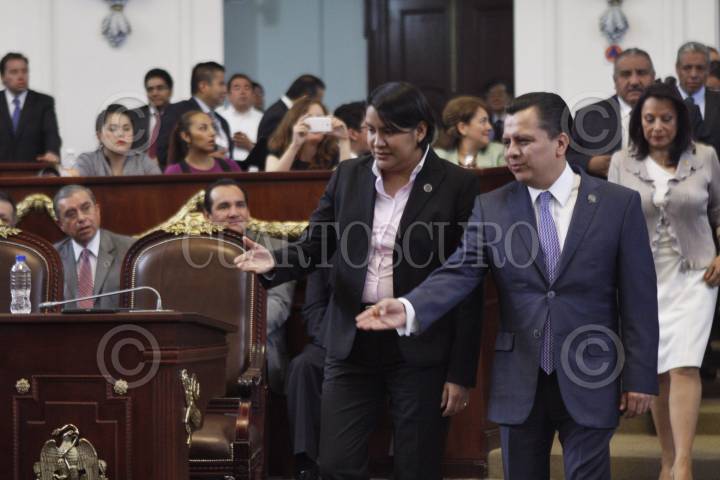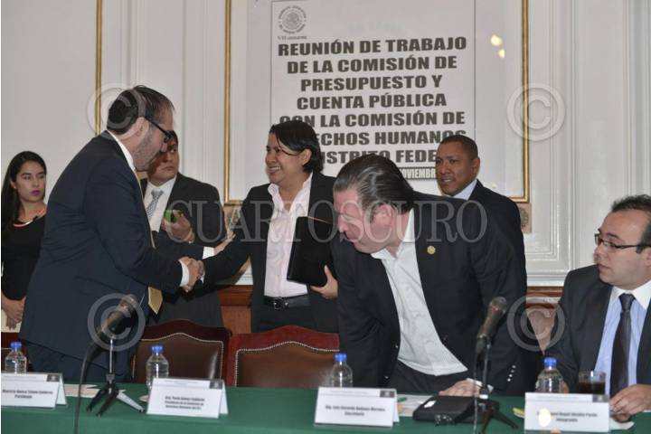 MÉXICO, D.F., 24MARZO2015.- Perla Gómez, comisionada presidenta de la CDHDF, compareció ante el pleno de la Asamblea Legislativa del DF, la recibió Manuel Granados, presidente dela comisión de gobierno de asamblea. FOTO: MOISÉS PABLO /CUARTOSCURO.COM