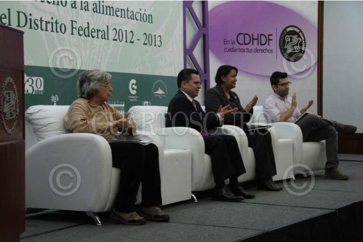 MÉXICO, D.F., 21JULIO2015.- La Comisión de Derechos Humanos del Distrito Federal presentó el informe especial " El derecho a la alimentación en el Distrito Federal 2012-2013". Presidieron el evento Alicia Carriquiriborde, representante de la sección mexicana FÍAN Internacional; Manuel Granados Covarrubias, consejero jurídico de servicios legales del D.F.; Perla Gómez Gallardo, titular de la CDHDF y Paulo Ramírez, representante de la FAO. FOTO: ISABEL MATEOS /CUARTOSCURO.COM