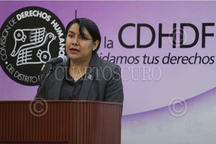 MÉXICO, D.F., 28ABRIL2015.- Perla Gomez Gallardo, titular de la Comisión de Derechos Humanos del Distrito Federal durante la presentación de la recomendación 1/2015 que se realizó en la Sala del Consejo de la CDHDF. FOTO: RODOLFO ANGULO /CUARTOSCURO.COM