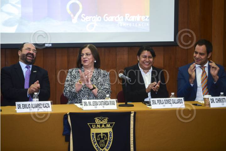 MÉXICO, D.F., 07SEPTIEMBRE2015.- Emilio Álvarez Icaza junto a Luis De La Barreda, María Leoba Castañeda Rivas, Perla Gómez Gallardo, Presidenta de la Comisión de Derechos Humanos del Distrito Federal (CDHDF) y Christian Steiner durante la inauguración de la 4ª edición de la competencia Sergio García Ramírez. FOTO: CUARTOSCURO.COM