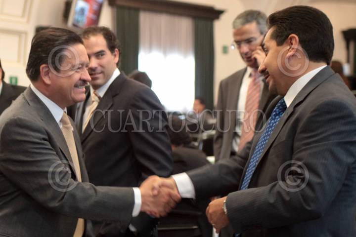 MÉXICO D.F., 30ABRIL2010.- El senador del PRD Carlos Navarrete y el diputado del PRI Francisco Rojas durante la instalación de la Comisión Permanente del Congreso de la Unión. La Asamblea eligió al senador Carlos Navarrete Ruiz como presidente de la Mesa Directiva de la Comisión Permanente. FOTO: CUARTOSCURO.COM