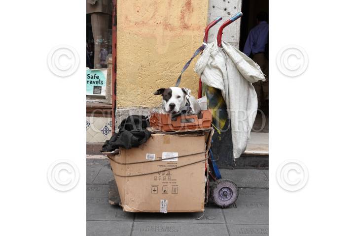 CIUDAD DE MÉXICO, 19ABRIL2018.- Una perra reposa sobre una caja fuerte a las afueras de una cerrajería cerca del barrio chino de la capital. FOTO: TERCERO DÍAZ /CUARTOSCURO.COM