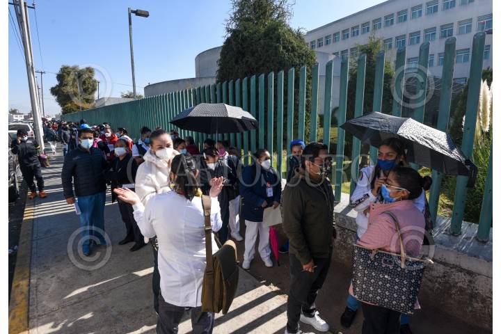 TOLUCA, ESTADO DE MÉXICO, 31MARZO2025.- Personal del IMSS Bienestar - Hospital Perinatal Monica Pretelini Sáenz se manifestaron durante la mañana de este lunes bloqueando Paseo Tollocan a unos metros del nosocomio, como parte delegación las protestas en otros hospitales de la capital mexiquense exigiendo mejoras salariales, mejoras en la infraestructura, abastecimiento de medicamentos, mobiliario, entre otras cosas. FOTO: CRISANTA ESPINOSA AGUILAR /CUARTOSCURO.COM