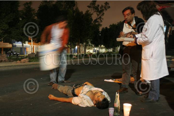 ECATEPEC, ESTADO DE MÉXICO, 21SEPTIEMBRE2009.- Sobre avenida R1 al cruce con la calle Gobernador Hank González en la colonia Granjas Valle de Guadalupe, fue atropellado un hombre de aproximadamente 35 años, por un vehículo que se dio a la fuga. FOTO: LUZ ACEVEDO/CUARTOSCURO.COM