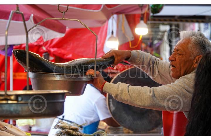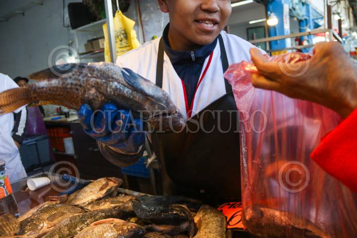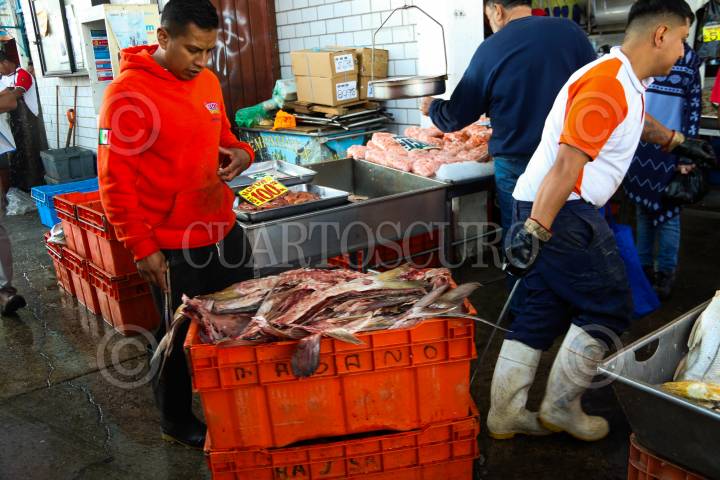 CIUDAD DE MÉXICO, 12ABRILO2025.- Pescados y mariscos son vendidos en el Mercado "La Nueva Viga" durante el periodo de la Cuaresma. FOTO: MAGDALENA MONTIEL/CUARTOSCURO.COM