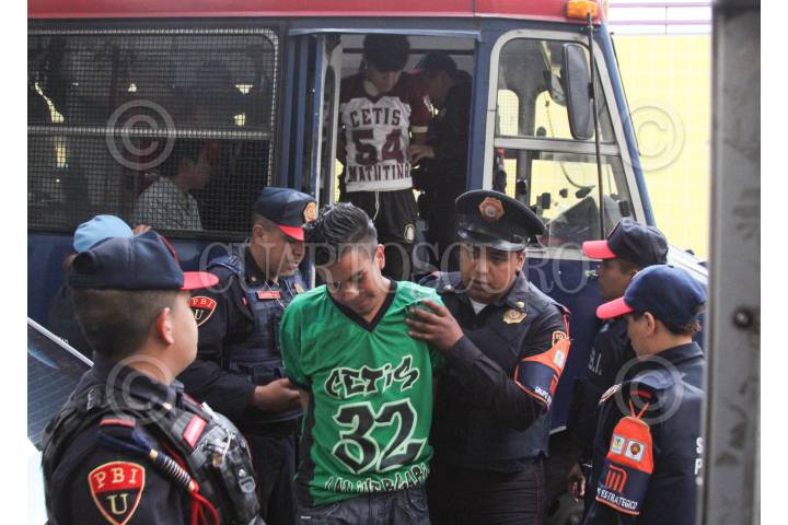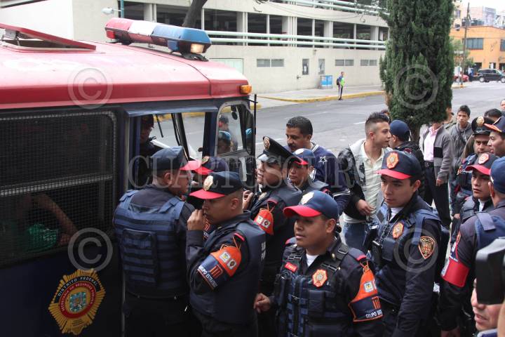 MÉXICO, D.F., 03JULIO2014.- Policias de la Secretaría de Seguridad Pública del D.F. adscritos a la seguridad del Sistema de Transporte Colectivo Metro, detuvieron a 18 jovenes que causaron daños en la estación Chabacano de la Línea 9, quienes lanzaron dos petardos al interior de la estación. Dichas personas fueron puestas a disposición ante el ministerio público. FOTO: SAÚL LÓPEZ / CUARTOSCURO.COM