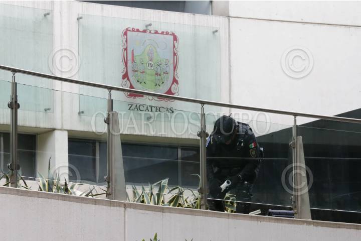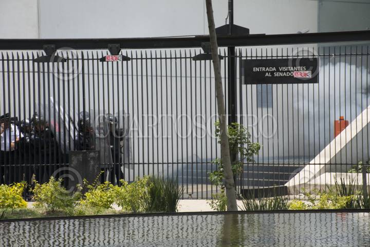CIUDAD DE MÉXICO, 24SEPTIEMBRE2024.- Elementos del grupo Zorro de la Secretaría de Seguridad Ciudadana (SSC) retiraron los petardos que no explotaron y que fueron lanzados por normalistas de Ayotzinapa al interior del Senado, quienes se manifestaron en las inmediaciones de este recinto en el marco del décimo aniversario de la desaparición de los 43 normalistas de la Escuela Normal Rural Raúl Isidro Burgos. FOTO: CUARTOSCURO.COM