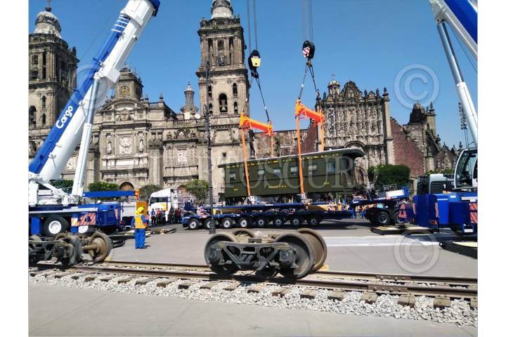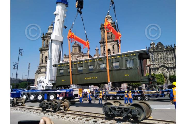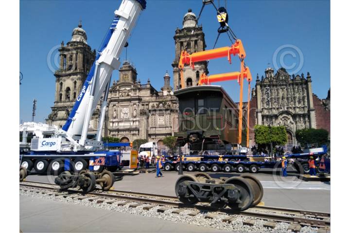 CIUDAD DE MÉXICO, 18NOVIEMBRE2019.- Trabajadores tuvieron que realizar varias maniobras para colocar la locomotora "Petra" que será parte de la ambientación que el gobierno federal esta llevando a cabo en el marco de las festividades del 109 Aniversario de la Revolución Mexicana. FOTO: ARMANDO MONROY /CUARTOSCURO.COM