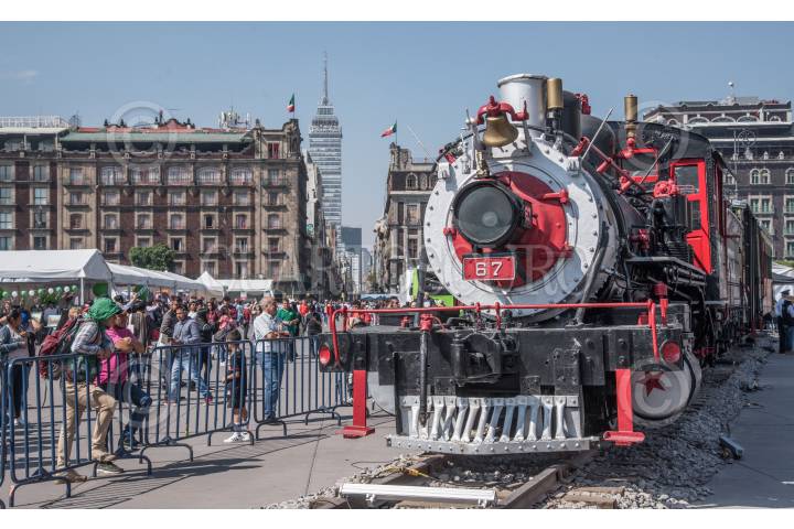 CIUDAD DE MÉXICO. 23NOVIEMBRE2019.- Personas que asisten al Zócalo capitalino para observar y tomar fotografías de la locomotora "Petra" que fue instalada en la explanada con con motivo de la celebración del aniversario 109º de la Revolución Mexicana. FOTO: MARIO JASSO /CUARTOSCURO.COM