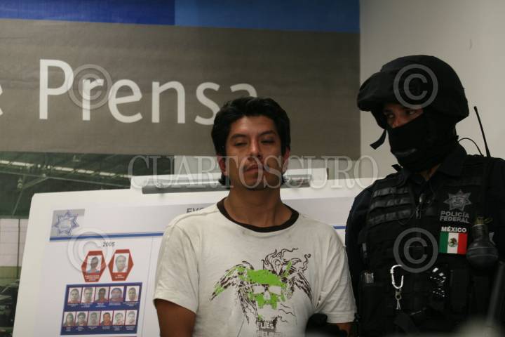 MÉXICO, D.F., 23SEPTIEMBRE2009.- Presentación de Abel Silva Petriciolet, líder de la banda de secuestradores, por la Secretaria de Seguridad Pública Federal, quien fue capturado en el Municipio de Atizapan de Zaragoza. FOTO: LUZ ACEVEDO/CUARTOSCURO.COM