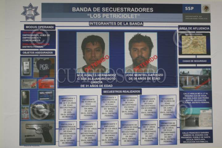 MÉXICO, D.F., 17JULIO2009.- Ficha de información de Noe Robles Hernández o Noe Alejandro Soto y de José Montiel Cardoso" presuntos secuestradores de la banda de "Los Petriciolet", a quienes se les atribuyen los secuestros y homicidios de los jóvenes Fernando Martí y Antonio Equihua. Estos sujetos fueron detenidos en la delegación Xochimilco y se les atribuyen 14 secuestros mas. FOTO: GUILLERMO PEREA/CUARTOSCURO.COM