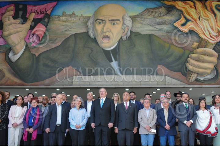 CIUDAD DE MÉXICO, 30SEPTIEMBRE2024.- El presidente de la República de Colombia, Gustavo Petro, dio una conferencia en el Antiguo Palacio de Medicina. En el evento estuvieron también Leonardo Lomeli, y el investigador John Ackerman. FOTO: PEDRO ANZA /CUARTOSCURO.COM