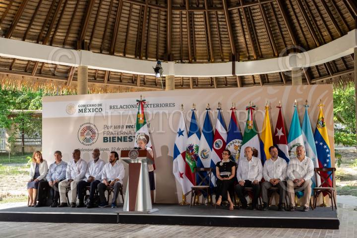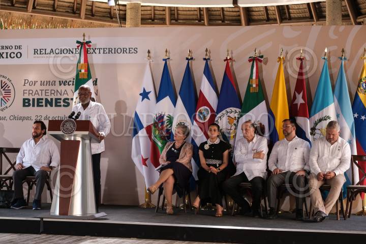 PALENQUE, CHIAPAS, 22OCTUBRE2023.- Se llevo la Cumbre Regional sobre Migración “Encuentro por una Vecindad Fraterna y con Bienestar” entre los países de Venezuela, Panamá, Costa Rica, Colombia, Haití, Cuba, Belice, Ecuador, El Salvador, Honduras y México. Los lideres de estos estados después de un recorrido por la Zona Arqueológica de Palenque, sostuvieron una reunión de más de dos horas en las que abordaron las diferentes problemáticas y soluciones para la migración irregular que ha ido en incremento en los últimos años. Abordaron los problemas de origen, camino y destino de los miles de migrantes que hoy se encuentran en la ruta migratoria, mayormente con destino a Estados Unidos. FOTO: ISABEL MATEOS /CUARTOSCURO.COM