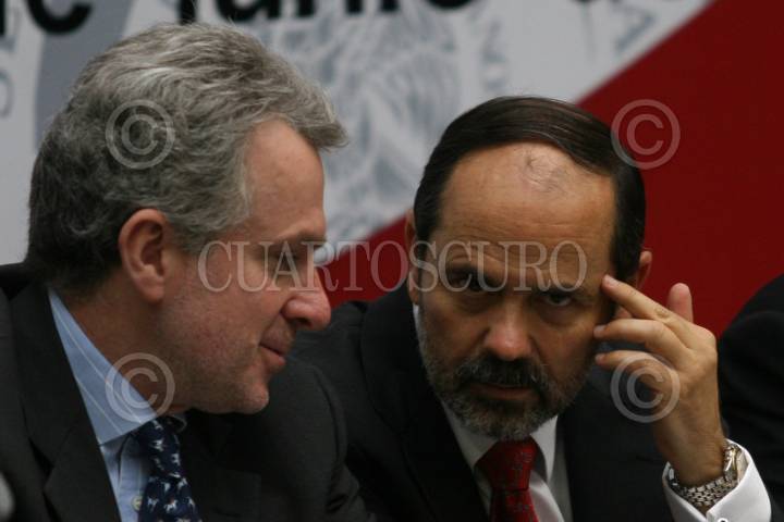MÉXICO D.F. 12JUNIO2008.-Se realizó el décimo debate sobre la reforma energética con el tema “Política e Instrumentos para Impulsar la Industria Petroquímica” esto en las instalaciones del Senado de la República.En la imagen los senadores, Carlos Navarrete (PRD) Santiago Creel (PAN), Gusatvo Madero (PAN) Alejandro Zapata (PAN). FOTO: GUILLERMO PEREA/CUARTOSCURO.COM