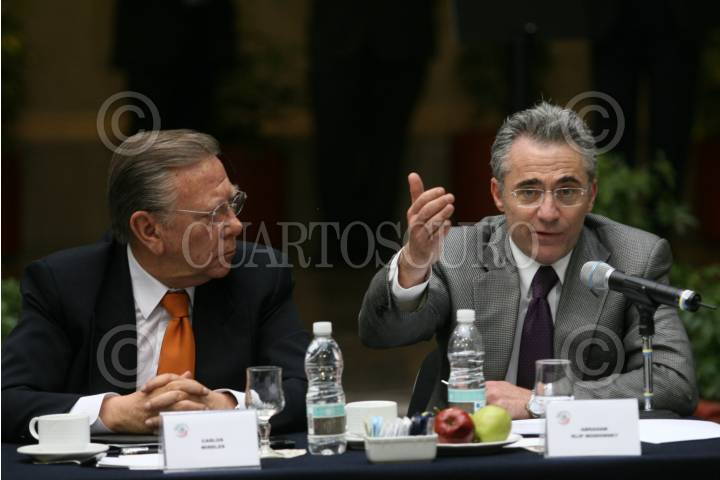 MÉXICO D.F. 12JUNIO2008.-Se realizó el décimo debate sobre la reforma energética con el tema “Política e Instrumentos para Impulsar la Industria Petroquímica” esto en las instalaciones del Senado de la República.En la imagen Carlos Mireles y Abraham Klip Moshisnky. FOTO: GUILLERMO PEREA/CUARTOSCURO.COM