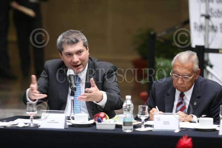 MÉXICO D.F. 12JUNIO2008.-Se realizó el décimo debate sobre la reforma energética con el tema “Política e Instrumentos para Impulsar la Industria Petroquímica” esto en las instalaciones del Senado de la República.En la imagen Jose Luis Peña Zepeda y Antonio Gershenson. FOTO: GUILLERMO PEREA/CUARTOSCURO.COM