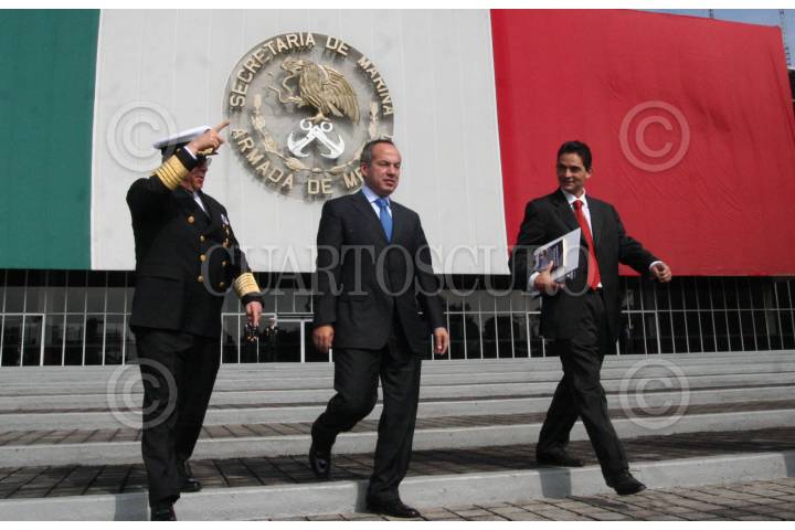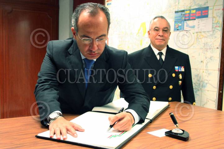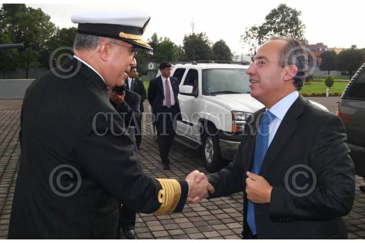MEXICO D.F. 12 DE SEPTIMBRE 2006. El Almirante Marco Antonio Peyrot González, Secretario de Marina se reunió con Felipe Calderón Hinojosa, presidente electo. Durante el encuentro, intercambiaron puntos de vista sobre los avances alcanzados en el alistamiento y capacitación del personal militar naval. FOTO:ALFREDO GUERRERO/CUARTOSCURO.COM