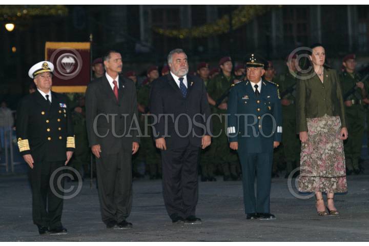 MÉXICO, D.F. 04SEPTIEMBRE2006.- Alejandro Encinas, Manlio Fabio Beltrones y Vicente FOx Quesada durante la ceremonia de apertura y clausura del ciclo escolar 2006 en el Colegio Militar. FOTO: Iván Stephens/CUARTOSCURO.COM