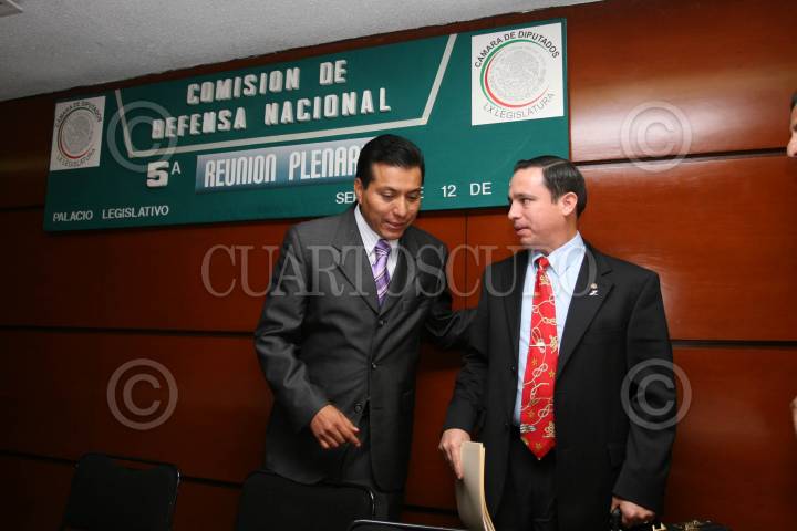 MÉXICO D.F. 12SEPTIEMBRE2007.-Los diputados Jesús Arredondo Velázquez y Marco Antinio Peyrot Solís, durante la reunión plenaria de la Comisión de la Defensa Nacional, en las instalaciones de la Cámara de Diputados. FOTO: GUILLERMO PEREA/CUARTOSCURO.COM