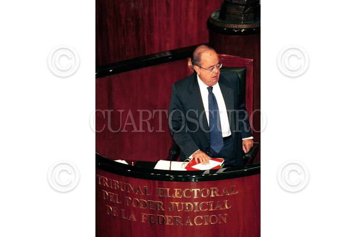 Jose Luis de la Peza, presidente del TRIFE, al termino de la sesion de este medio dia donde se dieron a conocer los veredictos de varias impugnaciones por delitos electorales de las pasadas elecciones federales. FOTO: Pedro Mera/CUARTOSCURO.COM