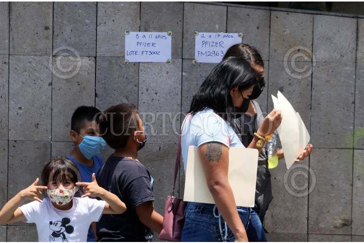 En la cuidad de Querétaro se lleva a cabo la campaña de vacunación de la primera dosis contra Covid-19 para niños de 5 a 11 años. La vacuna utilizada es la formula de Pfizer exclusiva para niños. La Secretaria del Bienestar calcula vacunar más de 240 mil niños.