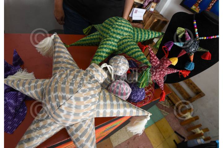 TENANCINGO, ESTADO DE MÉXICO, 05DICIEMBRE2023.- Ángeles Ortega, artesana de innovación en la rama de bisutería con rebozo y Yolanda Legarreta, innovadora en prendas de rebozo, originarias del municipio de Tenancingo forman parte del colectivo Arte Tenancingo, y como una forma de preservar el uso del rebozo en un objeto representativo en las fiestas decembrinas comenzaron a elaborar piñatas de rebozo, de diversos colores y tamaños, en una pieza en promedio tardan alrededor de dos horas y no sé desperdicia nada del rebozo ya que todo es utilizado para darle vida a otras prendas. Sus piñatas hasta el momento han sido enviadas a la CDMX, Ciudad Juárez, Monterrey y Querétaro, y esperan poder enviarlas a más lugares. Este municipio se caracteriza por sus rebozos y este colectivo en la búsqueda de preservar el uso del mismo ha innovado el portar esta prenda interviniendo otras prendas, así no se pierde el uso de los rebozos. El colectivo está formado por 9 artesanos y ofrecen desde mezcales de sabores, sales preparadas, Pan de Tecomatlán, prensas, licores, muebles de madera, artículos de piel, y 4 artesanas de innovación en rebozo se dedican a hacer bisutería, camisas, sombreros, bolsas, gorras entre otras cosas. Su tienda se encuentra a una cuadra del centro de Tenancingo y también los pueden encontrar en sus redes sociales. FOTO: CRISANTA ESPINOSA AGUILAR /CUARTOSCURO.COM