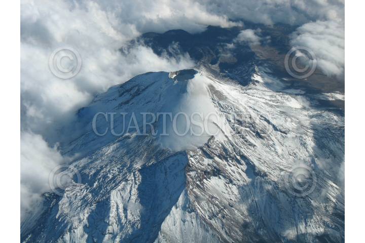 MÉXICO,D.F, 09FEBRERO2007.- Vista aérea del Pico de Orizaba con una superficie de 19,750 has, este antiguo volcán ofrece un panorama de bello contraste con la región intertropical que se extiende a sus faldas. A ello se añade su vegetación boscosa, que es un auténtico museo vivo de la flora y fauna del área. FOTO: ELIZABETH RUIZ/CUARTOSCURO.COM
