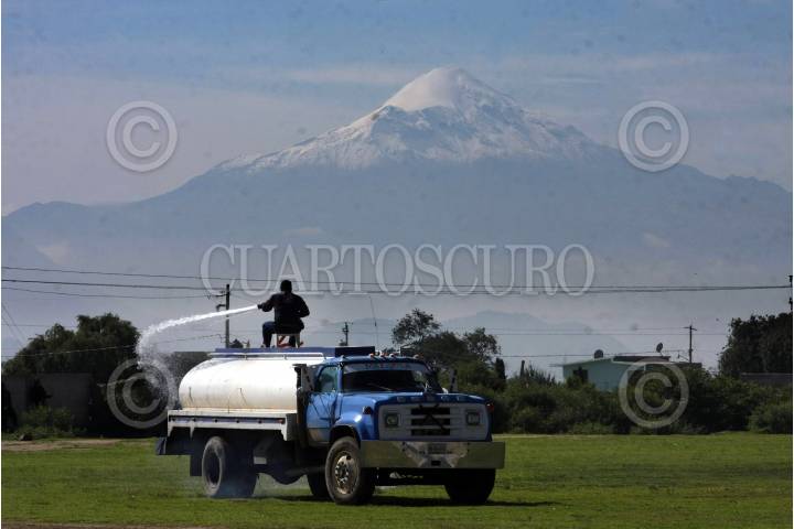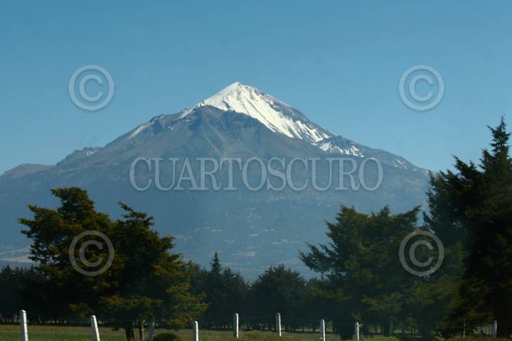 LIBRES, PUEBLA, 04AGOSTO2011.- El Pico de Orizaba se pudo apreciar en su cúspide con una capa de nieve, vista desde el municipio de Libres. FOTO: FRANCISCO GUASCO/CUARTOSCURO.COMM