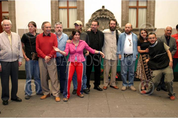 México, D.F., 20MARZO2004.- Se presentó el catalogo de la exposición Conversación Pictórica sobre la Ciudad de México en el museo de la ciudad. En la imagen parte de los pintores que muestran su obra; Benjamín Dominguez, José Agustín Fernando Fuentes, entre algunos. FOTO: Moisés Pablo/CUARTOSCURO.COM