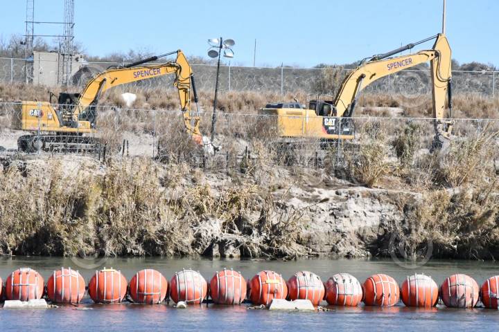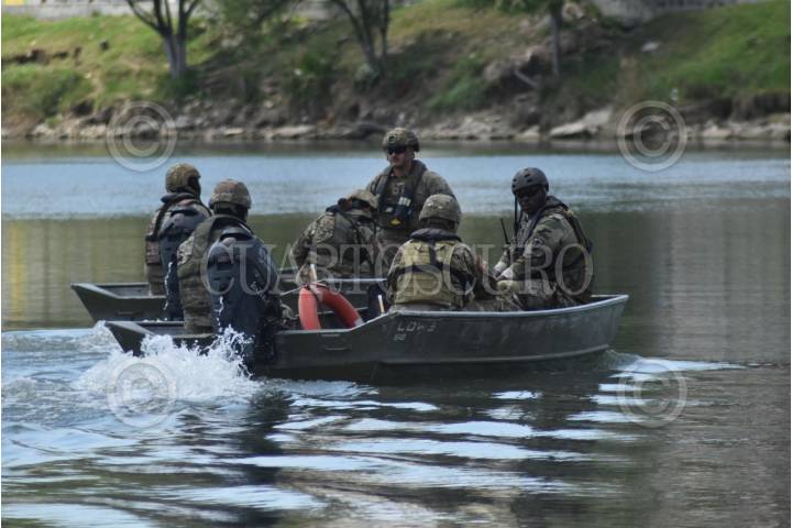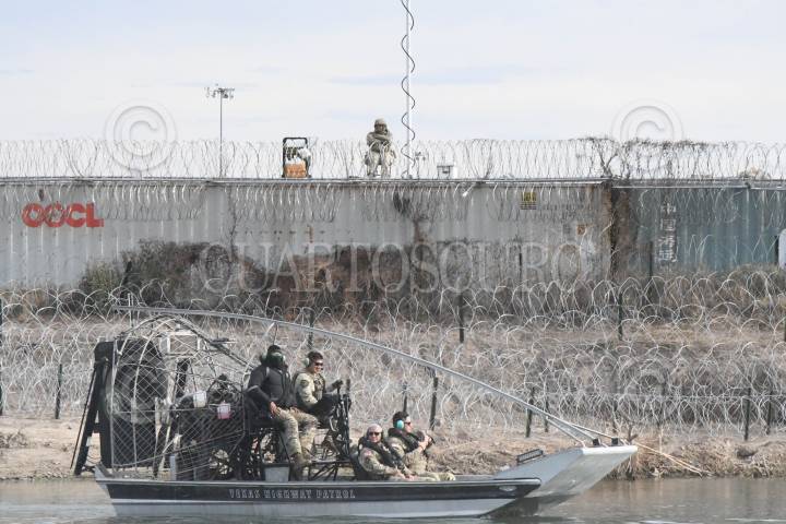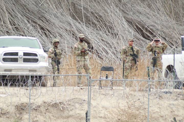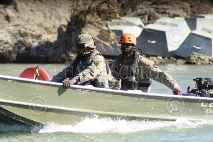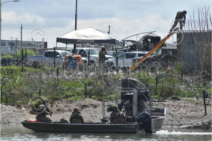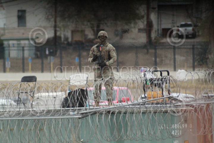 PIEDRAS NEGRAS, COAHUILA, 20ENERO2025.- Tras la toma de protesta de Donald Trump como Presidente de Estados Unidos se vio el reforzamiento de la seguridad en la frontera entre Piedras Negras e Eagle Pass por parte de soldados estadounidenses, quienes realizaron tareas de vigilancia y de alambrada para impedir el paso del flujo migratoria irregular. FOTO: CUARTOSCURO.COM