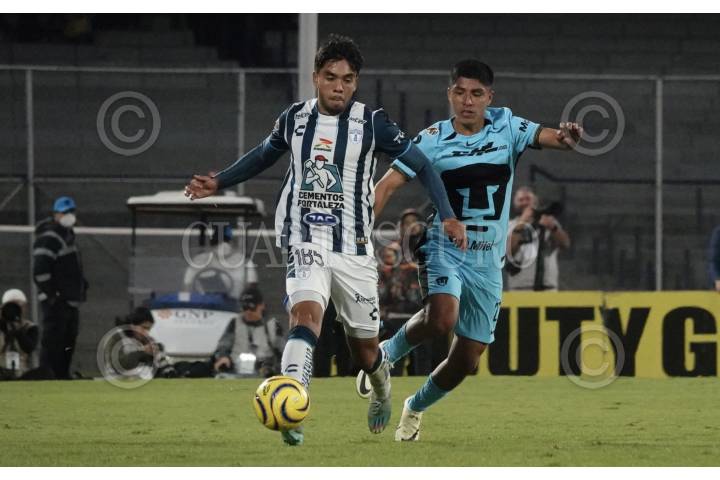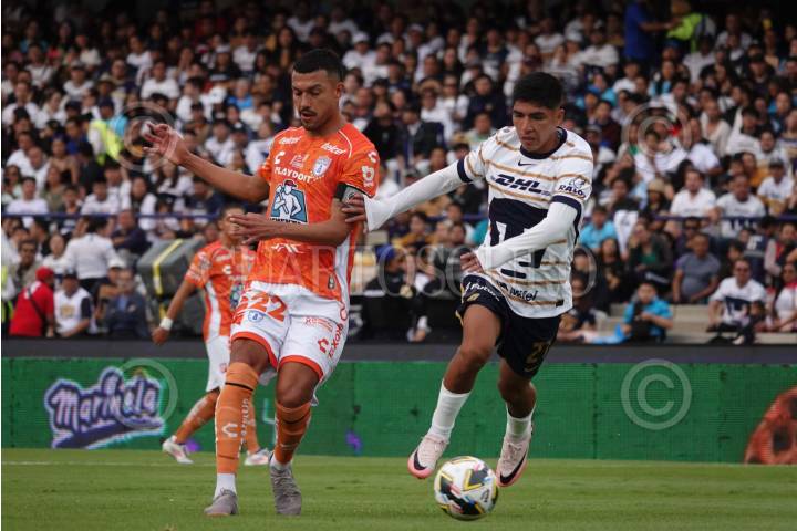 CIUDAD DE MÉXICO, 21JULIO2024.- Los jugadores Gustavo Cabral (Pachuca), Piero Quispe (Pumas), disputaron el balón durante el partido de la Jornada 4 Apertura 2024 Liga BBVA, realizado en el Estadio Olímpico Universitario. FOTO: GRACIELA LÓPEZ /CUARTOSCURO.COM