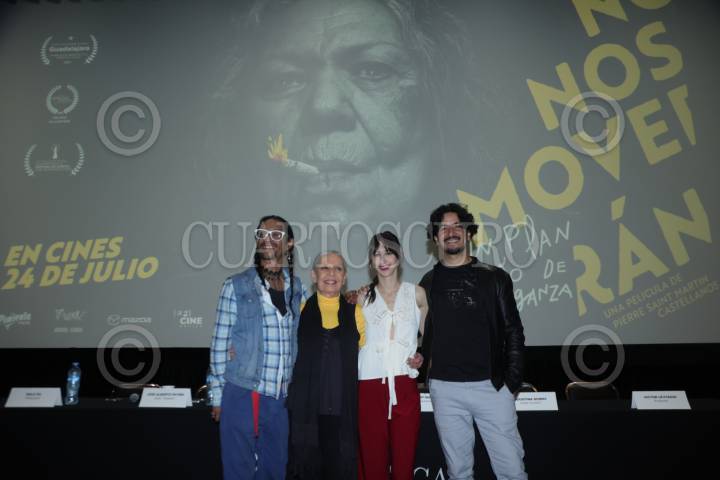 CIUDAD DE MÉXICO, 09JULIO2025. El actor José Alberto Patiño; la actriz, Luisa Huertas; el director, Pierre Saint-Martin y la actriz, Agustina Quinci durante la conferencia de Perea a de la película “No nos moverán”, en la Cineteca Nacional. Producción que tendrá su estreno a nivel nacional el 24 de julio y la cual ha conseguido diversas nominaciones a los premios Ariel 2025. FOTO: EDGAR NEGRETE LIRA/CUARTOSCURO.COM
