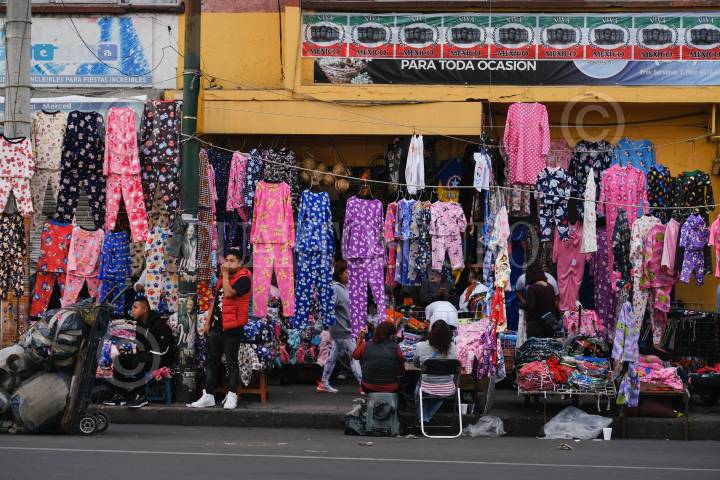 CIUDAD DE MÉXICO, 03SEPTIEMBRE2019.- Vendedores esperan la compra de pijamas sobre avenida Fray Servando, a la altura de la Merced, en el Centro Histórico. FOTO: GRACIELA LÓPEZ /CUARTOSCURO.COM