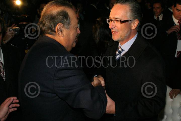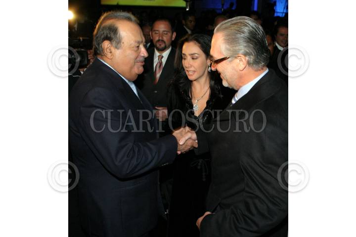 MÉXICO, D.F., 23NOVIEMBRE2006.- Carlos Slim, fundador del grupo Carso y Ricardo Salinas Pilego, presidente del grupo Salinas y Rocha, se saludan durante la celebración de los cien años de la creación del consorcio Salinas y Rocha en museo Rufino Tamaño. FOTO: MOISÉS PABLO/CUARTOSCURO.COM