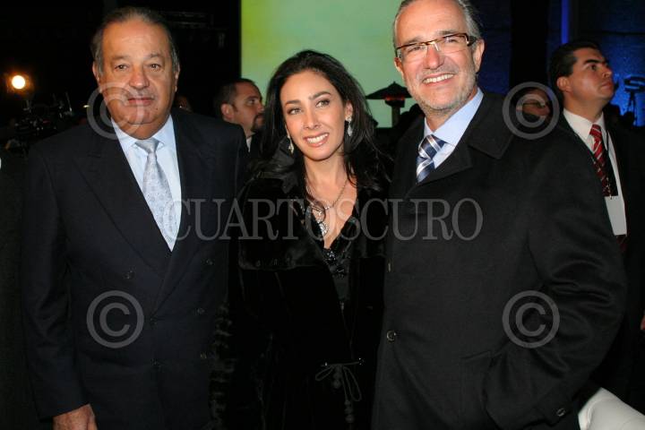 MÉXICO, D.F., 23NOVIEMBRE2006.- Carlos Slim, fundador del grupo Carso, María Laura Medina de Salinas y Ricardo Salinas Pilego, presidente del grupo Salinas y Rocha, se saludan durante la celebración de los cien años de la creación del consorcio Salinas y Rocha en museo Rufino Tamaño. FOTO: MOISÉS PABLO/CUARTOSCURO.COM