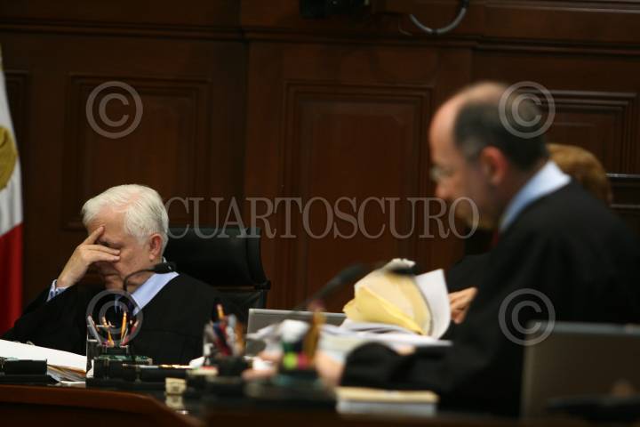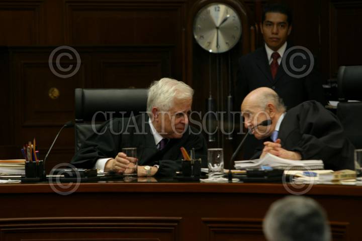 MÈXICO, D.F. 29NOVIEMBRE2007.- El pleno de la Suprema Corte de Justicia de la Nación concluyó que no se demostró la existencia de violación grave de derechos humanos de la periodista Lydia Cacho. En la imagen los ministros Genero Gòngotra Pimentel y Salvador Aguirre. FOTO: PAOLA HIDALGO/CUARTOSCURO.COM
