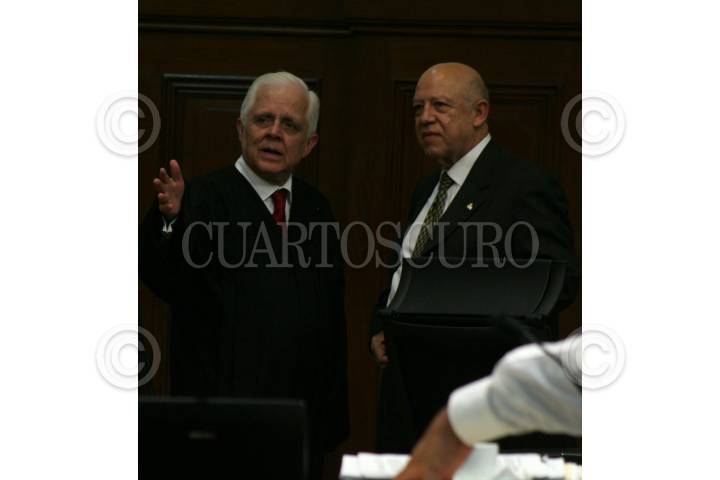 MÉXICO, D.F., 30NOVIEMBRE2009.- Guillermo Ortiz Ministro Presidente de la Suprema Corte de Justica entregó un reconocimiento al Ministro Genaro Góngora Pimentel al término de la sesión solemne que se efectuo esta mañana con motivo de la conclusión de su mandato. FOTO: CUARTOSCURO.COM