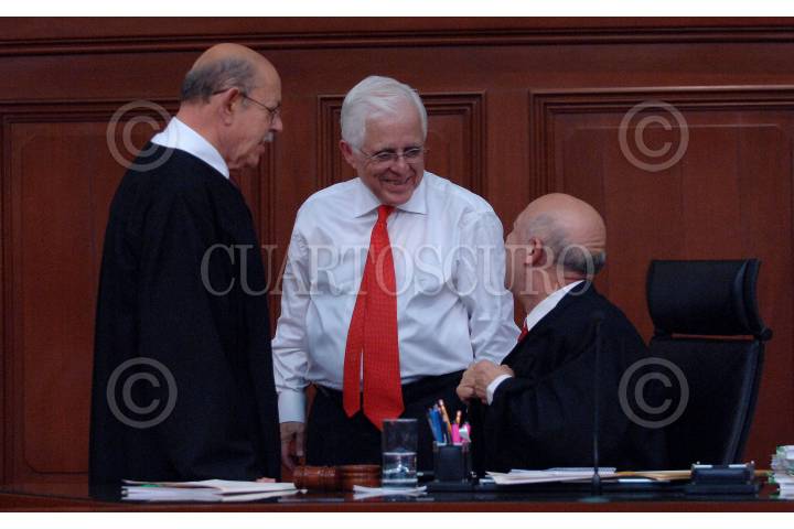 MÉXICO, D.F. 07JUNIO207.- En la Suprema Corte de Justicia de la Nación se declaró resuelta la acción de inconstitucionalidad contra las reformas a las leyes federales de Telecomunicaciones. Los ministros Margarita Luna Ramos, Genaro David Góngora Pimentel y José Fernando Franco Gonzáles durante la sesión. FOTO: PAOLA HIDALGO/CUARTOSCURO.COM