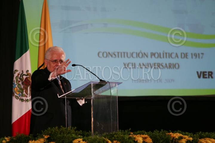MÉXICO D.F., 05FEBRERO2009.- Genaro David Góngora Pimentel, Ministro de la Suprema Corte de Justicia, durante su participación en el encabezo esta mañana en la ceremonia por el XCII Aniversario de la Constitución Política de 1917, que rige en el país, esto en el Polifórum Cultural Siqueiros . FOTO: GUILLERMO PEREA/CUARTOSCURO.COM
