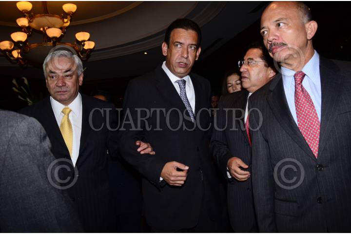 MÉXICO, D.F., 28SEPTIEMBRE2011.- Marco Antonio Bernal, presidente de la Fundación Luis Donaldo Colosio; Humberto Moreira, presidente del Partido Revolucionario Institucional (PRI) y Oscar Pimentel González, representante del gobierno del estado de Coahuila en el Distrito federal, se dirigen a un encuentro con académicos y líderes de opinión que organizó este instituto político en un conocido hotel del Centro de la Ciudad de México. FOTO: MISAEL VALTIERRA/CUARTOSCURO.COM