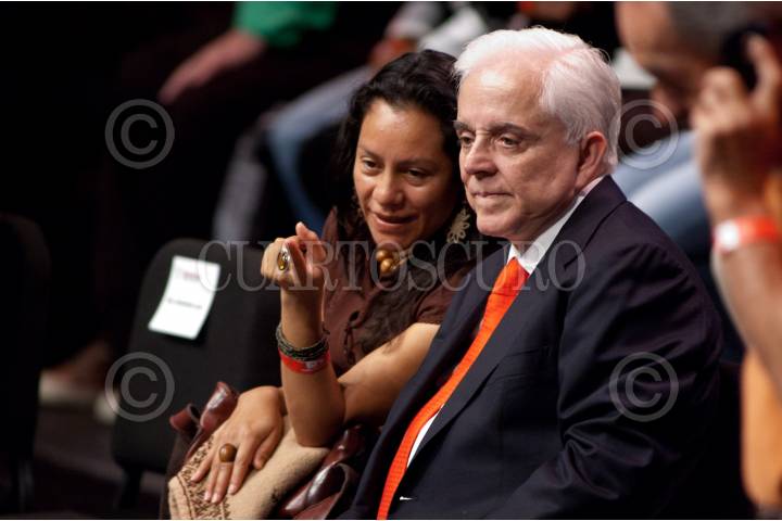 MÉXICO. D.F., 02OCTUBRE2011.- Laura Castillo y el exministro, Genáro Gongora Pimentel dialógan momentoas antes de arrancar la ceremonia constitutiva como Asociación Civil de el Movimiento de Regenaración Nacional la mañana de hoy en el Auditorio Nacional. FOTO: FRANCISCO RODRÍGUEZ/CUARTOSCURO.COM