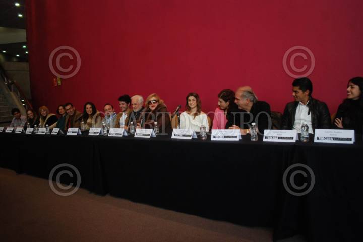 MÉXICO, D.F., 01DICIEMBRE2011.- Con un elenco encabezado por Ricardo Blume, Silvia Pinal, Irene Azuela, Karina Gidi, y Fernando Luján, se ofreció la conferencia de prensa de la película Tercera Llamada, la cual se realizó en la sala Miguel Covarrubias del Centro Cultural Universitario. FOTO: MOISÉS PABLO/CUARTOSCURO.COM
