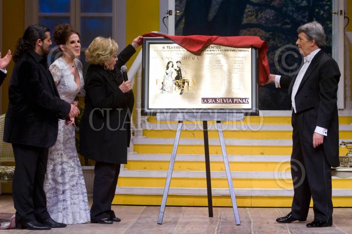 MÉXICO, D.F., 27DICIEMBRE2011.- Los actores Juan Ferrara y Rebeca Jones encabezan el elenco de la obra "Filomena Marturano", que llegó anoche a sus 200 reresentacione en el teatro de Los Insurgentes, donde la actriz Silvia Pinal develó una placa conmemorativa. FOTO: ISAAC ESQUIVEL/CUARTOSCURO.COM